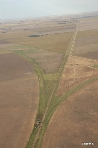 Los ramales desde Juan E. Barra (izquierda) y Defferrari (derecha), confluyen en la vía de Tres Arroyos-Tandil a Dorrego-B.Blanca (centro) en esta foto aerea tomada por Esteban L. y publicada en Panoramio.